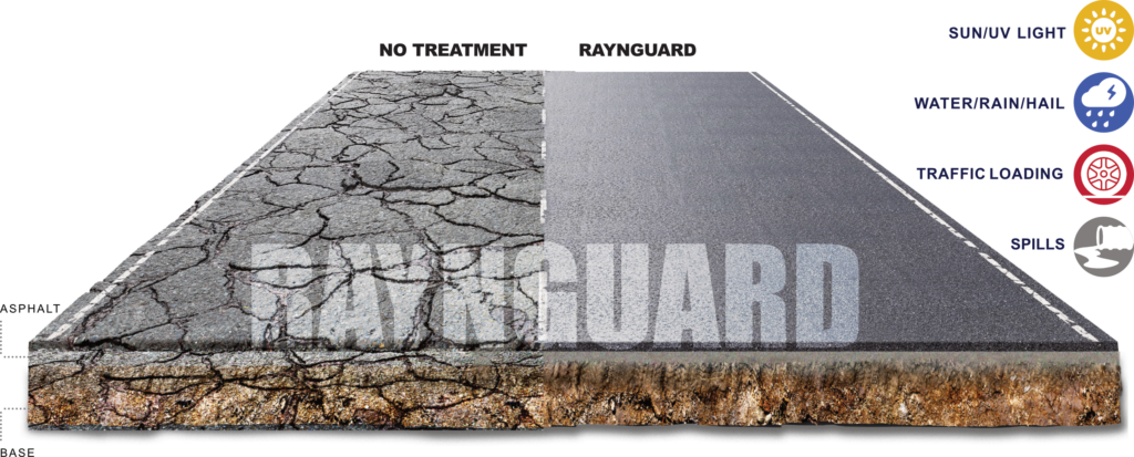 By its nature asphalt starts to become brittle due to exposure to the elements. First, the asphalt begins to visually lighten due to oxidation. Over time the asphalt will harden and the small fines in the asphalt matrix will begin to ravel, exposing the larger aggregate in the mix. The speed of deterioration depends on weather conditions, traffic volumes and traffic types. Left unmaintained costly repairs may be needed to fix cracks, alligatored cracking, potholes, etc.